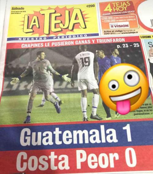 "Guatemala 1 - Costa Peor 0", fue el titular de La Teja.