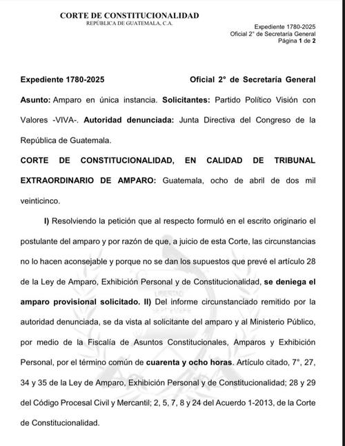 La Corte de Constitucionalidad (CC) resolvió este martes 8 de abril uno de los amparos con los cuales se buscaba revertir el beneficio económico que ha llevado a los parlamentarios a ganar más de Q66 mil mensuales; sin embargo, el fallo los favorece.