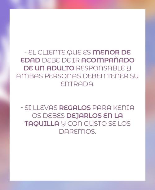 - Si llevas regalos para Kenia Os, debes dejarlos en la taquilla.