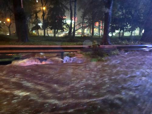 Además, en el bulevar principal de San Cristóbal, se reporta acumulación de agua. Una imagen muestra una inundación que se registra cerca de la Parroquia San Antonio María Claret.