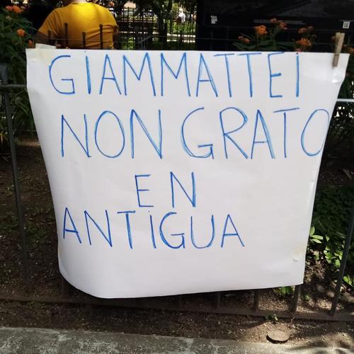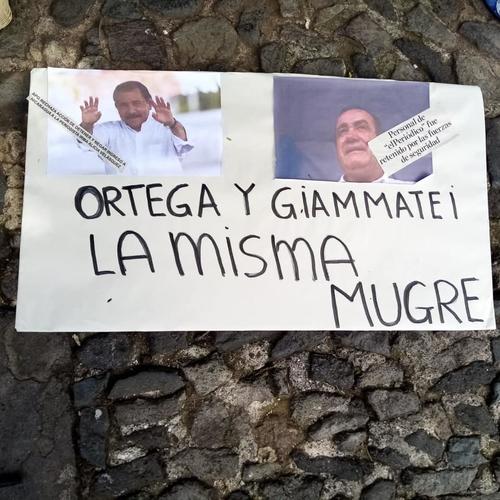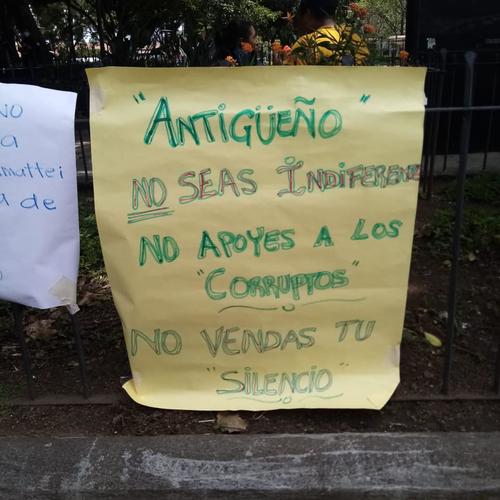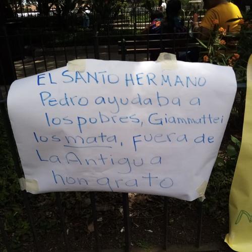 "Renuncia Giammattei", "Giammattei non grato", "Fuera Giammattei", son algunos de los mensajes que se lee en pancartas de manifestantes en la Antigua Guatemala.