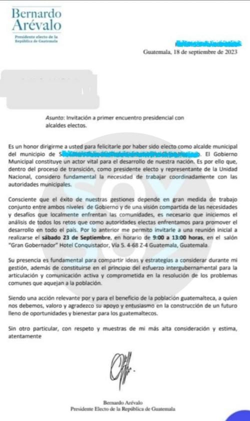 El presidente electo Bernardo Arévalo convocó a una reunión con alcaldes electos para este sábado 23 de septiembre.