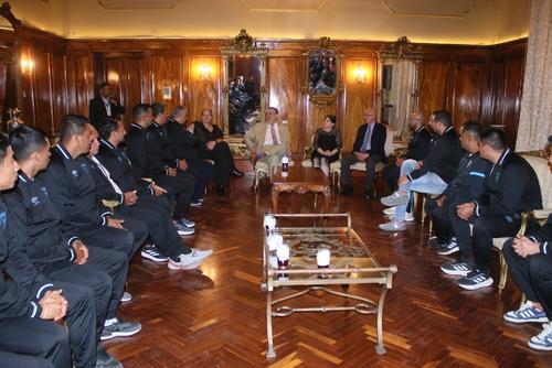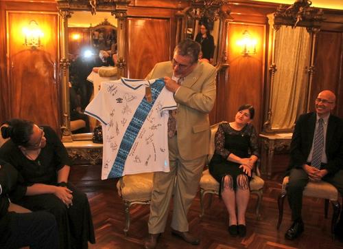 Tras finalizar la visita, los seleccionados entregaron una camiseta de la azul y blanco con las firmas y dedicatorias hacia el mandatario.