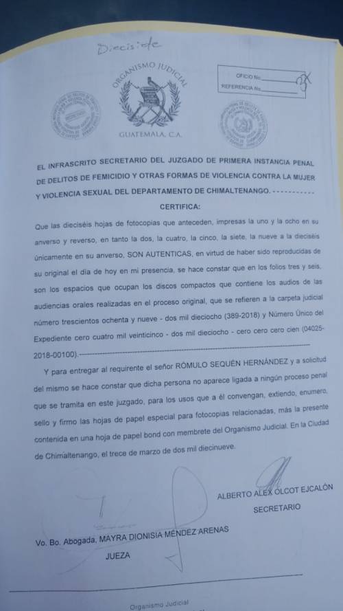 En 2018 una menor de edad, estudiante de diversificado, llegó a hacer prácticas a la Municipalidad de Chimaltenango. En esa comuna conoció al concejal primero, Rómulo Sequén Hernández, quien presuntamente la violó.