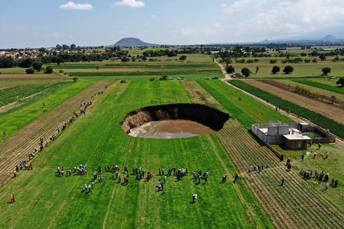 Para el domingo, el agujero tenía unos 30 metros de diámetro, el lunes se amplió a 60 y este martes las autoridades calculaban que había alcanzado 80 metros.