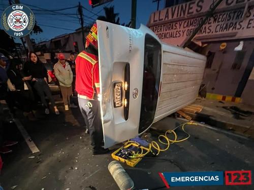 La mujer resultó prensada en un vehículo tras fuerte colisión en la zona 10; hasta el momento, no ha sido identificada.