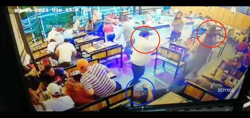 En las afueras del restaurante, los otros dos hombres se quedaron a la espera. De pronto, uno de ellos sacó un arma y disparó en la cabeza al guardia de seguridad. Cuando eso ocurrió, los otros dos hombres terminaban de subir las gradas hacia el segundo nivel.
