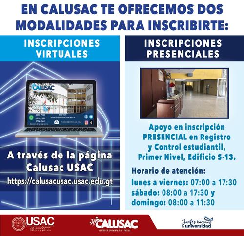 Si estás interesado en inscribirte en Calusac, te brindan dos opciones de modalidad, virtual o presencial.