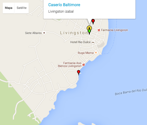 Punta de Baltimore está en la orilla de la bahía de Amatique, está a dos kilómetros del municipio Yojoa, Izabal. Al llegar a Livingston en lancha, queda a 12 km.