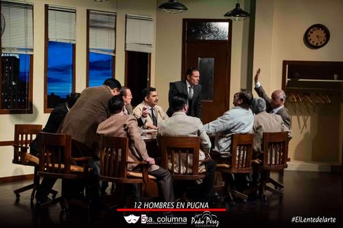 En agosto, el Teatro del IGA presenta la puesta en escena "12 Hombres en Pugna", producción de Quinta Columna Producciones, bajo la dirección de la maestra de teatro Elma Ramírez. Esta es la segunda temporada de la obra, reconocida como uno de los mayores referentes del género judicial, y que ha sido adaptada con éxito al cine y la televisión