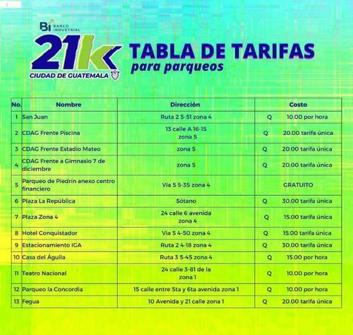 En ese sentido, la comuna capitalina dio a conocer los parqueos que se habilitarán para los participantes ese día, así como las tarifas de cada uno.
