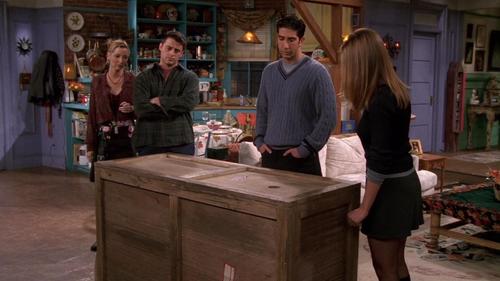 La relación entre Joey y Chandler se resiente cuando el primero besa a la novia del segundo, pero Bing es capaz de cualquier cosa con tal de que su amigo lo perdone. Tribbiani decide que, para ello, debe pasar seis horas encerrado en una caja.