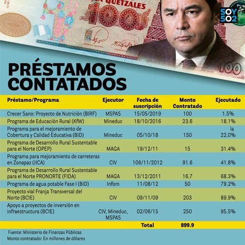 Pero también hay dos de apoyo presupuestario, es decir, que el Gobierno puede utilizar los recursos para lo que más les convenga, pese a que la Constitución y la Ley del Presupuesto obliga a que los préstamos se utilicen únicamente para inversión, pues se considera que el costo traerá un beneficio, hecho que no sucede cuando se utiliza para el pago administrativo como salarios. Estos dos préstamos suman 450 millones de dólares, es decir 3.42 mil millones de quetzales.