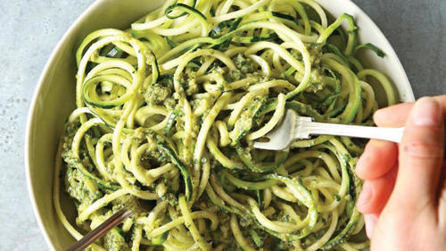 - Escurre los fideos y combínalos con las espinacas y la salsa pesto.