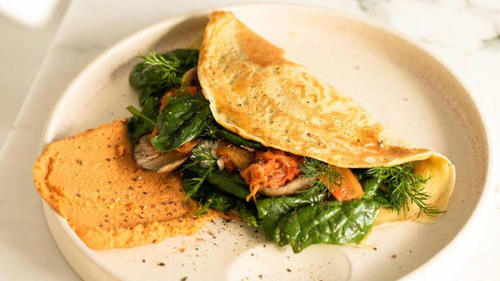 - Vierte la mezcla de huevo en el sartén y cocina por 2-3 minutos por cada lado, o hasta que esté cocido al gusto.
