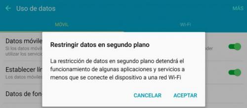 Ten en cuenta que, en caso de activar la restricción, se detendrá el funcionamiento de algunas apps y servicios hasta que te conectes a una red WiFi.