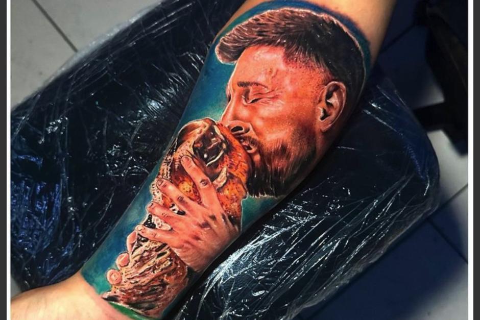 Se trata da un tatuaje del rostro de Messi besando la Copa del Mundial de Qatar 2022, una de las imágenes más virales y vistas de este año.