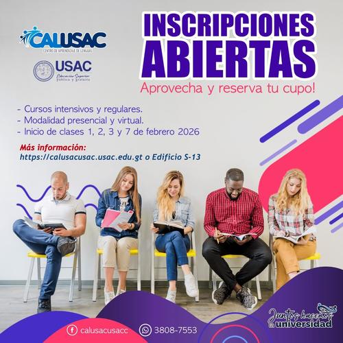 El Centro de Aprendizaje de Lenguas de la USAC, CALUSAC, abrió inscripciones para sus cursos de idiomas 2026.