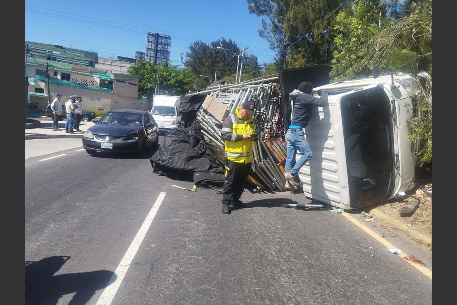 Un camión terminó volcado en la 8va. avenida del bulevar principal de San Cristóbal, zona 8 de Mixco, según confirmaron las autoridades de tránsito de ese municipio.
