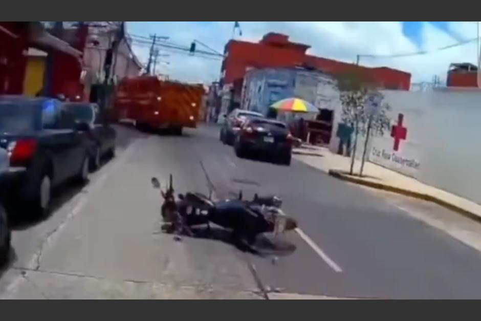 A través de redes sociales se ha viralizado un video, en el que se muestra el momento en que el conductor de una motocicleta sufrió un accidente de tránsito.