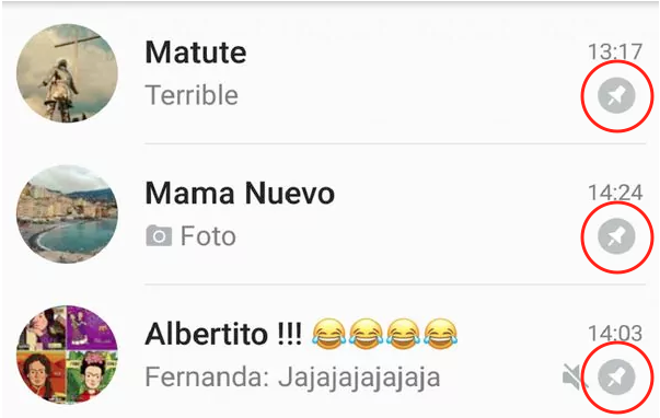 Para poder hacer uso de esta función, basta con mantener presionado un chat y aparecerá en la parte superior de la aplicación, entre otras opciones, una tachuela para pizarrón de corcho.