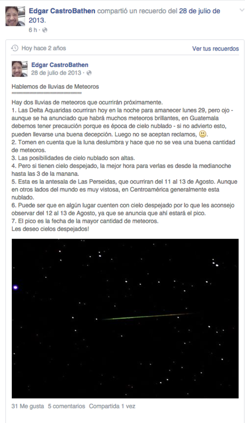 La lluvia de estrellas Delta Acuáridas se origina de los restos del cometa Machholz 96P, que cada cinco años se aproxima al Sol. La madrugada de este miércoles se podrá visualizar el hermoso espectáculo en el cielo.