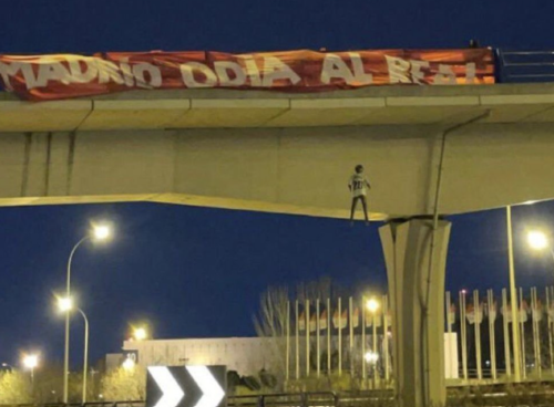 Sobre el puente se situó una pancarta en la que se puede leer "Madrid odia al Real", según las fotografías y vídeos publicados por medios locales.