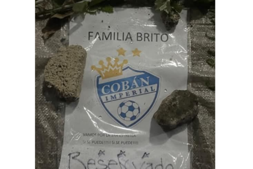 En una de las imágenes destaca una hoja con el logo de Cobán Imperial; sobre este se puede leer "Familia Brito" y, en la parte inferior, protegido con nylon y escrito con marcador, la palabra "reservado".