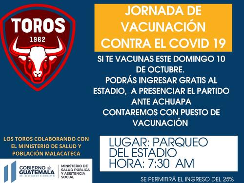La Junta Directiva del Deportivo Malacateco en conjunto con el Ministerio de Salud llevarán a cabo una jornada de vacunación contra el Covid-19 el próximo domingo en la previa del juego ante Achuapa.