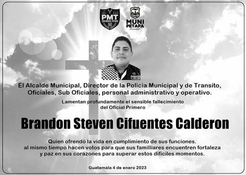 El agente fallecido fue identificado como Brandon Steven Cifuentes Calderón, oficial Primero, confirmaron las autoridades de esa comuna.