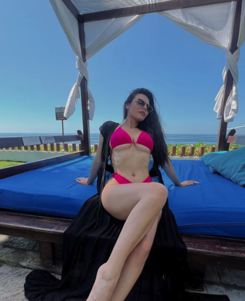 La conductora guatemalteca cautivó a sus seguidores con una serie de fotos en las que luce un bikini rosado.