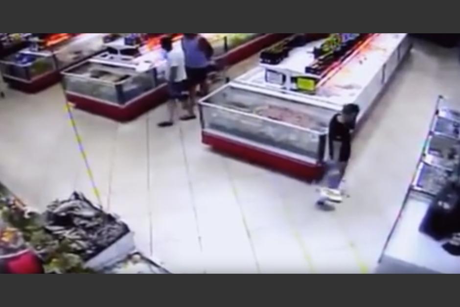 Cómo sacado de la película animada “Buscando a Nemo”, un cámara de seguridad instalada en un supermercado registró el momento en que un pez que se encuentra en un acuario salta a la cesta de un cliente para escapar del lugar.