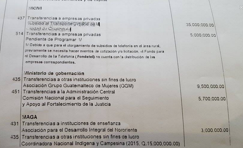 El Presupuesto General de Ingresos y Egresos de la Nación 2016 ya está en el pleno del Congreso en espera de su aprobación, la cual parece que no sucederá de forma fácil. Este viernes, varios diputados denunciaron que en el dictamen favorable no aparece el detalle de las fundaciones y Organizaciones No Gubernamentales (ONG) que recibirán, en conjunto, cerca de 1 mil millones de quetzales.