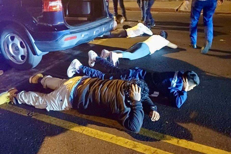 En un video compartido por el ministro de Gobernación, Francisco Jiménez, se observa que los tripulantes descienden del vehículo y los agentes les ordenan que se coloquen boca abajo en el piso, mientras hacen la inspección.