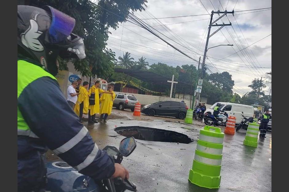 pic.twitter.com/cb5aCo5nsv Reportan la formación de un nuevo hundimiento en la zona 4 de Villa Nueva, en la salida del bulevar Los Reformadores.