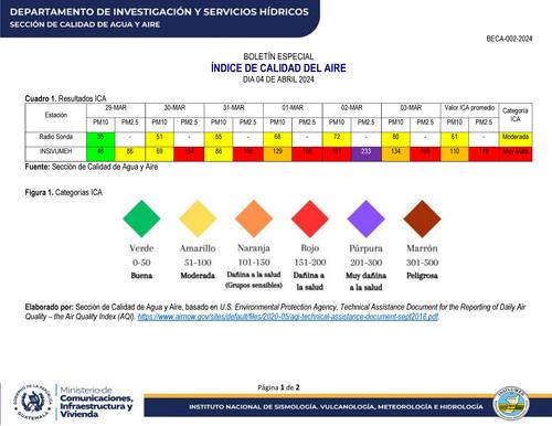 El Instituto Nacional de Sismología, Vulcanología, Meteorología e Hidrología (Insivumeh) alertó este 4 de abril, por medio de un boletín especial, por la mala calidad en el aire que respiran los habitantes de la ciudad de Guatemala.