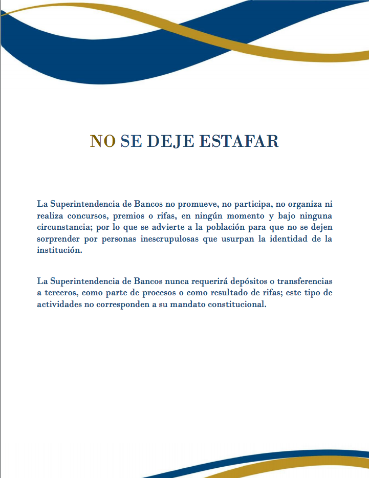 Según el comunicado de la Superintendencia del Sistema Financiero (SSF) de El Salvador, "un sujeto que se identifica como colaborador de la SIB" ofrece un premio de 35 mil dólares por un sorteo inexistente, pero solicita un depósito previo "para poder reclamar el dinero".