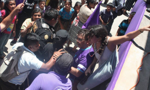 La Policía Nacional Civil (PNC) intentó retirar a la ciudadana pero no fue conseguido. (Foto: Facebook.com/PuebloCLICK)