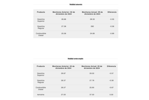 Los precios que se habían establecido el Ministerio de Energía y Minas (MEM) en el área metropolitana el pasado 09 de diciembre rondaban para autoservicio de la siguiente manera: