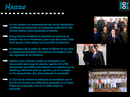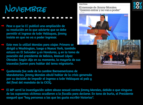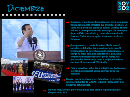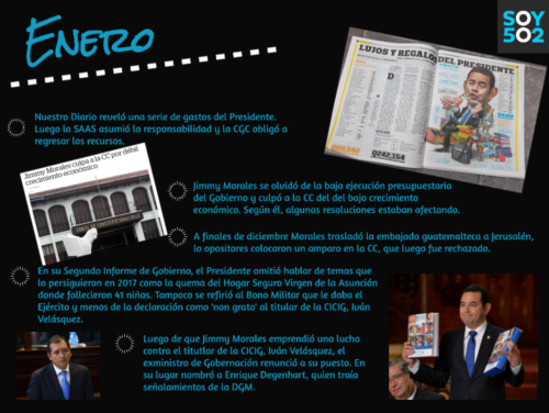 El presidente Jimmy Morales tuvo un año complicado. Empezó 2018 con la revelación de sus lujosos gastos, empezaba una lucha contra la Corte de Constitucionalidad, la CICIG y el comisionado Iván Velásquez, y tenía que nombrar nuevos funcionarios, porque algunos renunciaron, entre ellos el extitular del Ministerio de Gobernación, Francisco Rivas.