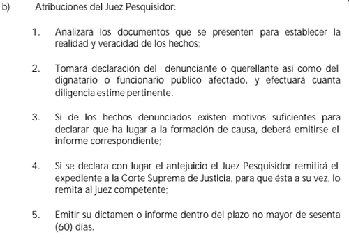 La solicitud de los antejuicios contra Baldizón y Torres son muy parecidos. Se basan en el hallazgo de volantes que ofrecen materiales de construcción a cambio de votos en Suchitepéquez. A partir de su llegada a la CSJ, los magistrados deberán elegir a un juez pesquisidor. Este puede ser un magistrado de la misma CSJ, un magistrado de Sala de Apelaciones o un Juez de primera instancia penal.