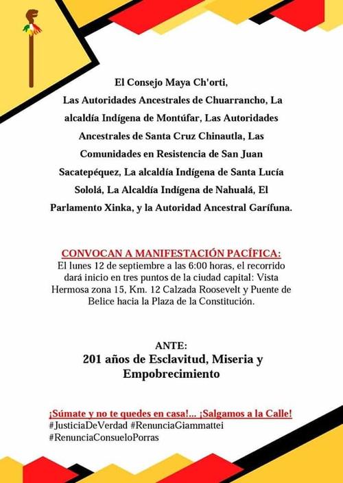 Autoridades ancestrales de diferentes municipios anunciaron una manifestación este lunes 12 de septiembre.