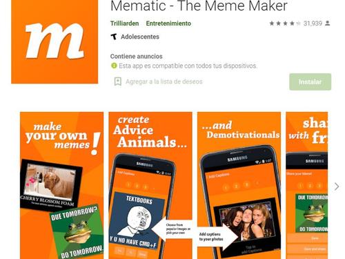 Te permite editar fotos y añadir texto para crear memes. También cuenta con una colección.