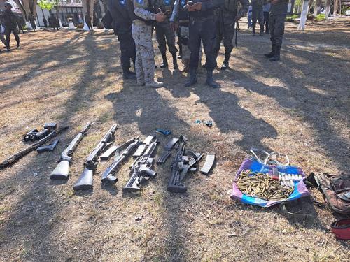 Además de las armas, también se incautaron municiones, binoculares, radios intercomunicadores, cargadores, cinturones para portar cartuchos y teléfonos celulares.