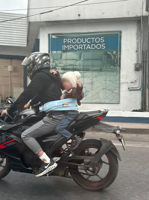 Una imagen captada en medio del tránsito muestra la arriesgada forma en la que era transportado un pequeño niño, en una motocicleta.