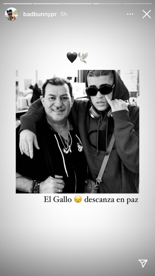 “El Gallo, descansa en paz”, escribió Bad Bunny, publicó el exponente del trap latino, acompañado de una foto con Tito Rojas.