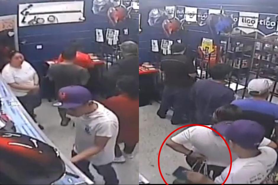 En un primer video, se ve a un hombre con gorra morada explorando el área y acercándose a la estantería de los celulares.