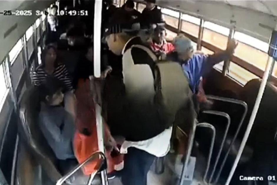 El momento quedó registrado por una cámara de seguridad instalada en el interior del autobús.