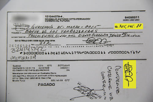 Del total de cheques que giró, Gramajo Antonio endosó él mismo y cobró al menos 12 millones 986 mil 655 quetzales, aunque la cifra podría ser mayor ya que hay varios cheques donde los endosos no son claramente legibles.