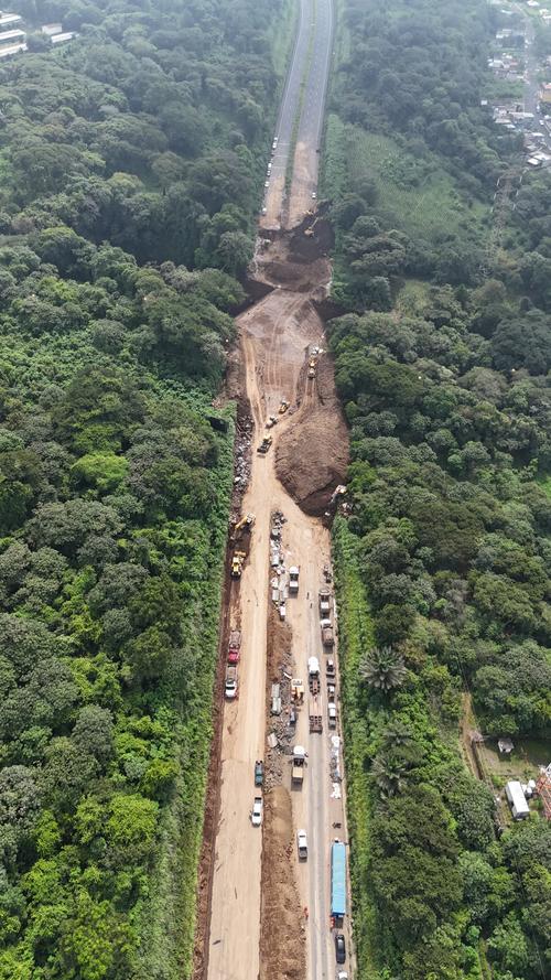 Soy502 viajó al kilómetro 44 de la autopista que conduce a Palín - Escuintla, para verificar el estado de los trabajos en el área previo a permitirse de nuevo la circulación de vehículos en el área.